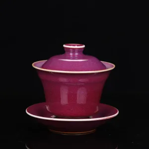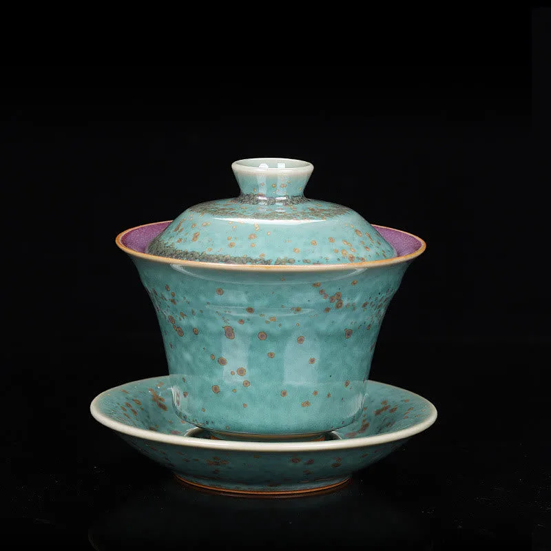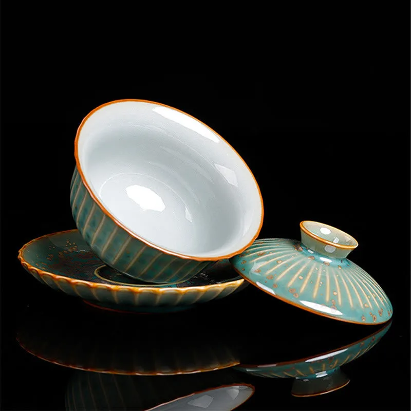 Retro Glaze Kiln Change Ceramic Gaiwan Sancai Teacup Kung Fu Tea Cup And Saucer With Lid