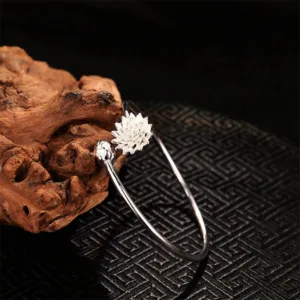 Experience the allure of Mythstone’ Retro Bracelet Bangle. Crafted from white copper and adorned with a lotus motif. this accessory embodies enlightenment. purity. and rebirth. making it a timeless piece for the spiritually inclined.