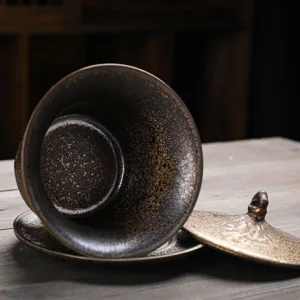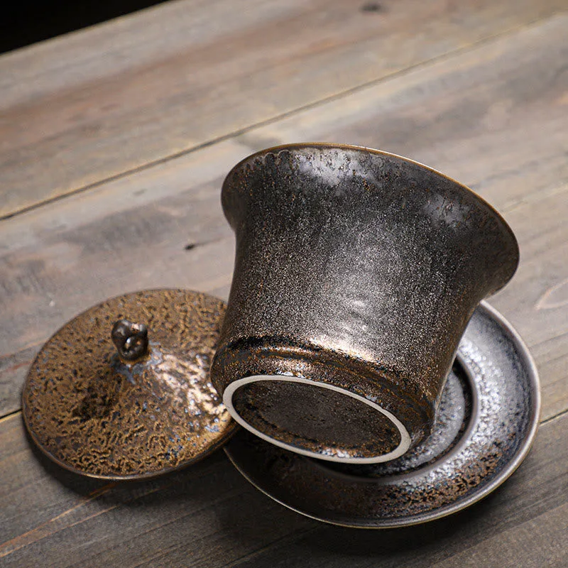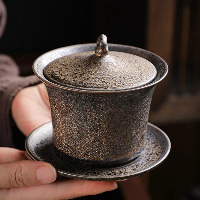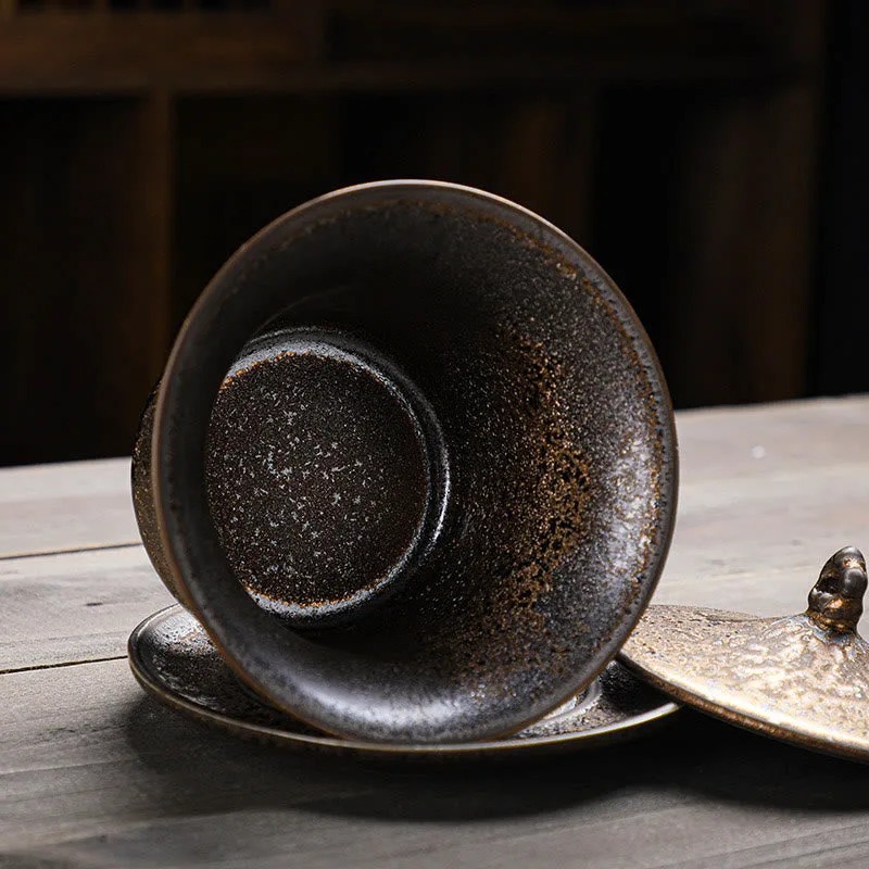 Retro Rust Glaze Ceramic Gaiwan Sancai Teacup Kung Fu Tea Cup And Saucer With Lid