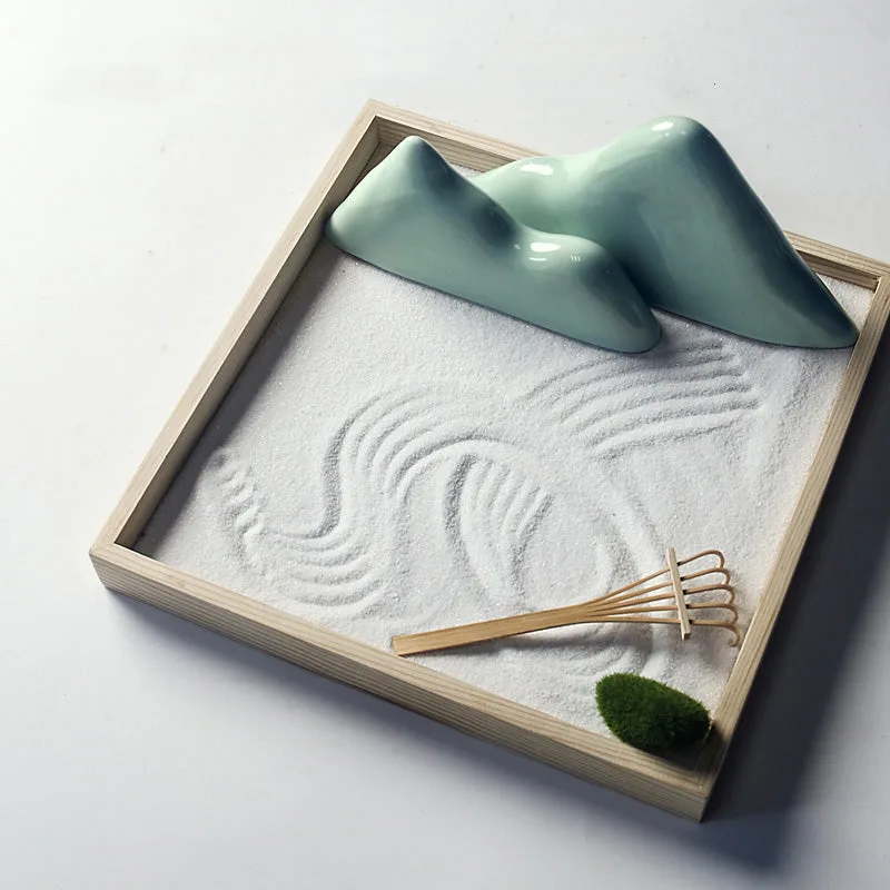 Grass*1. Rake*1. Rocks*2. Square Wooden Box*1. and Sand (500g);
