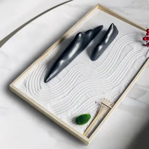 Immerse yourself in tranquility and enlightenment with Mythstone Rocks Landscape Meditation Enlightenment Zen Garden Decoration. This Zen-inspired decoration features a Zen Circle symbolizing effortlessness and enlightenment. Bring peace and calm to your space with its elegant and harmonious design.