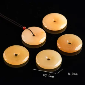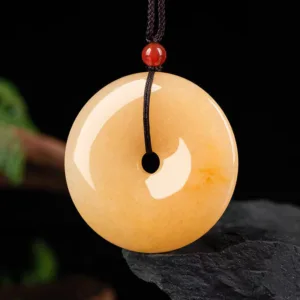 Experience the power of positivity with our Mythstone Round Golden Silk Jade Peace Buckle Wealth Pendant Necklace. Made by master craftsmen with high-quality materials. this unisex necklace is not only a beautiful accessory but also carries the meaning of peace. tolerance. and prosperity. The Golden Silk Jade stone adds an extra touch of luck. protection. and purity. A perfect combination for bringing good fortune and positive change.