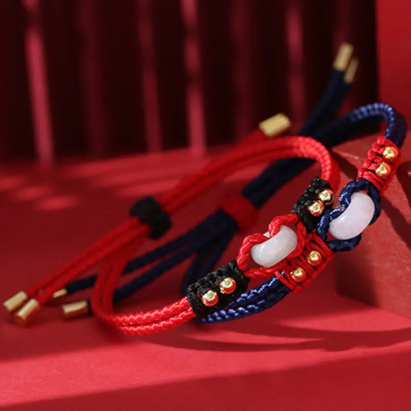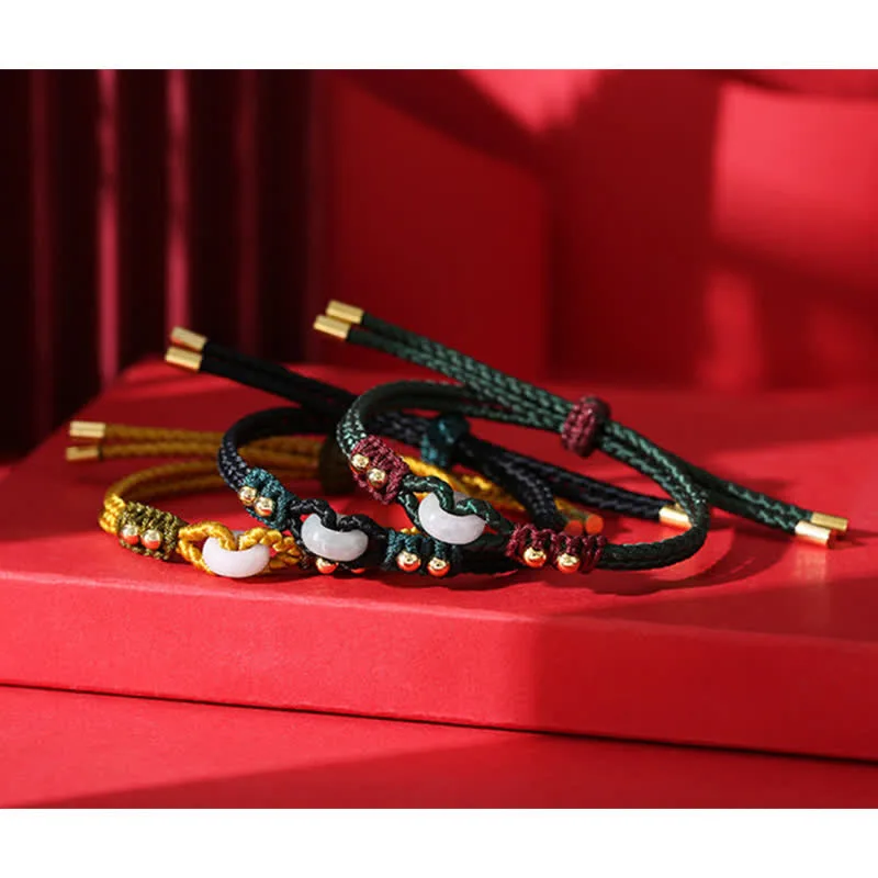 MythStone Round Peace Buckle Jade Abundance Wealth String Bracelet