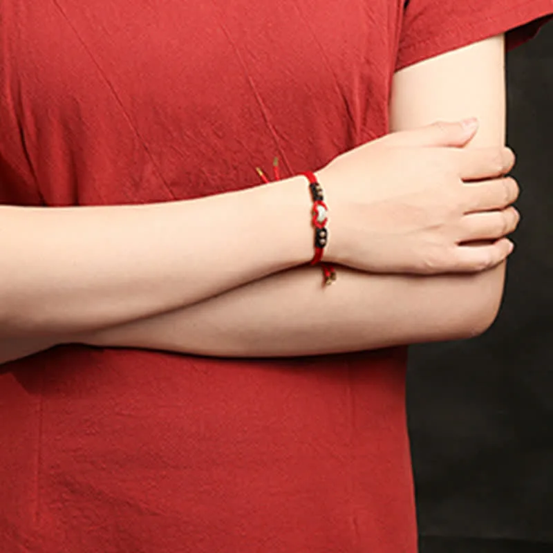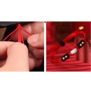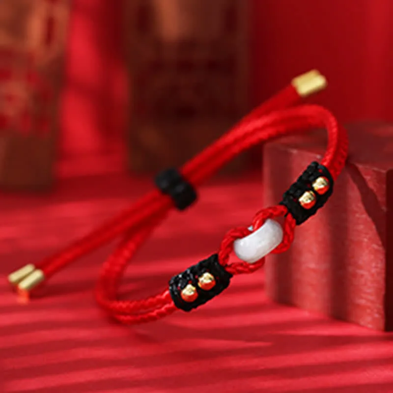 Introducing our Myth Stone Round Peace Buckle Jade Abundance Wealth String Bracelet. handmade by master craftsmen with high-quality materials. The peace buckle symbolizes peace and inner calm. while the jade stone promotes prosperity. abundance. and luck. The red string offers protection. faith. strength. and connection. With a wrist circumference of 15-21cm and an adjustable length of 22cm. this bracelet is a perfect fit for anyone. Please note that as our products are made from natural materials. slight irregularities and variations in color may occur. Wear this bracelet as a reminder of positive change and good luck.
