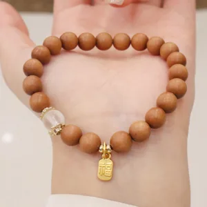 Handcrafted by master craftsmen. our Sandalwood Cat’s Eye Fu Character Charm Protection Bracelet brings protection. peace. and luck. This unique piece combines the calming properties of sandalwood. the supportive energies of Cat’s Eye. and the positive meanings of the Fu character. Experience the fusion of ancient wisdom and positive energies.