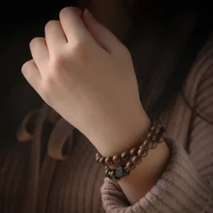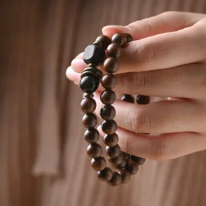 Sandalwood Ebony Wood Bead bracelet. available in single or double wrap styles. combines the natural healing properties of sandalwood and ebony. Each bead is carefully crafted to promote tranquility and balance. making it an ideal accessory for meditation or daily wear. This bracelet enhances your spiritual journey with its meaningful design and soothing presence.