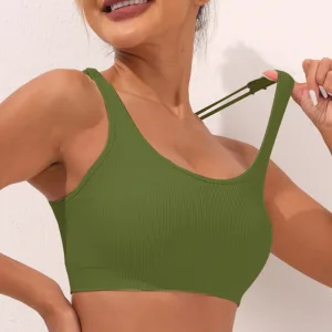 Mythstone Seamless Fitness Strappy Backless Bra Crop Tank Top Shorts Sports Gym Yoga Outfits