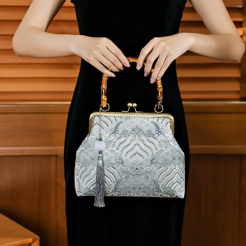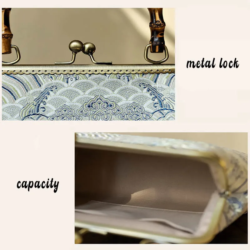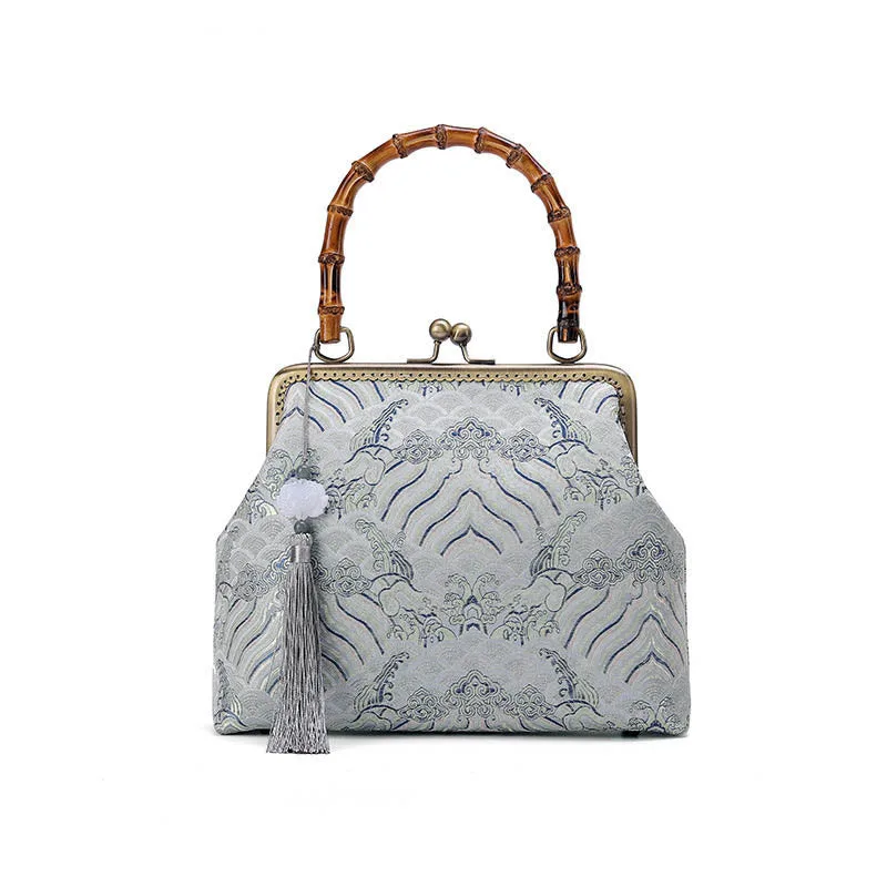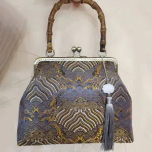 Silver Lines Bamboo Handle Metal Chain Crossbody Bag features a sleek design with silver lines and a durable metal chain and a bamboo handle. This versatile shoulder bag combines modern elegance with functionality. making it perfect for any occasion. Its stylish and practical design ensures it complements both casual and formal attire. adding a touch of sophistication and contemporary flair to your look.