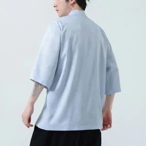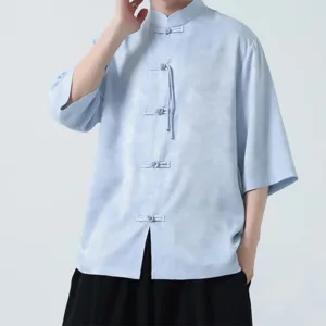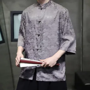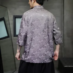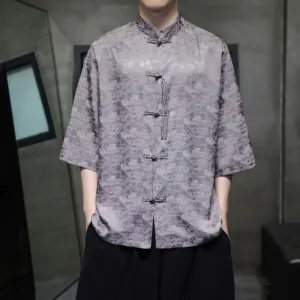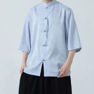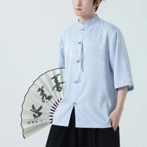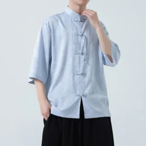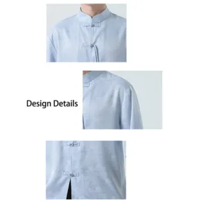 Simple Jacquard Frog-button shirt features traditional frog-buttons and three-quarter sleeves. This men’s T-shirt. crafted from high-quality jacquard fabric. symbolizes simplicity and elegance. The intricate patterns and thoughtful design make it ideal for meditation and spiritual practices. promoting a sense of calm and inner balance.