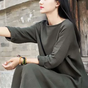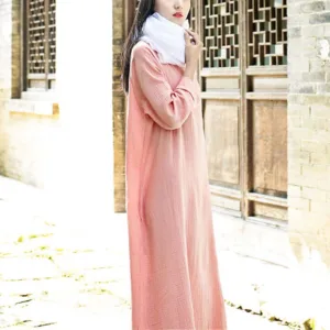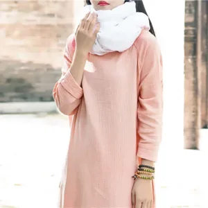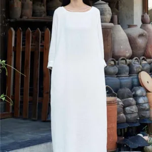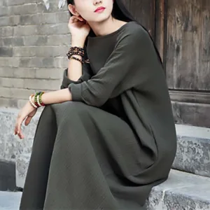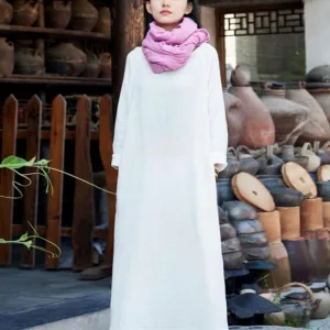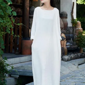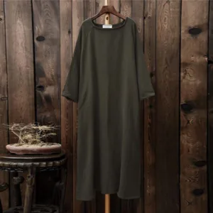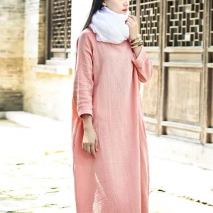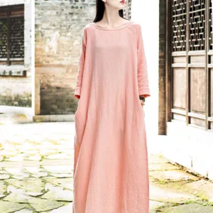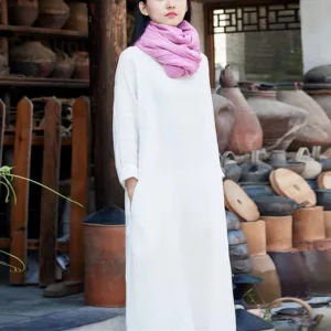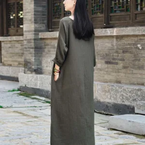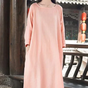 Simple Cotton Linen Tunic dress is designed with functionality and comfort in mind. Made from a blend of cotton and linen. this midi dress features convenient pockets and a relaxed fit. ensuring both utility and ease of movement. Perfect for Zen practices or casual days. it offers a minimalist aesthetic that appeals to those who appreciate simplicity and practicality in their everyday wear.