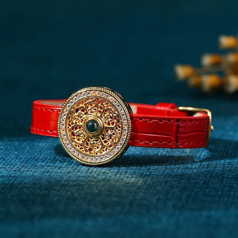 - Material: Leather. Gold Plated Copper. Jade