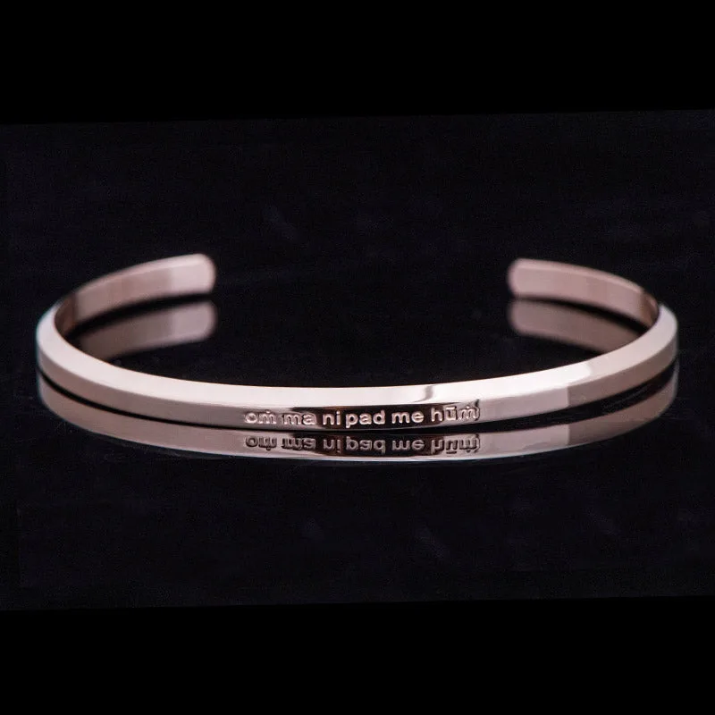 Experience harmony with our Mythstone Six True Words Bracelet. handcrafted from high-quality titanium steel. The engraving carries a potent Tibetan mantra. revered for manifesting love. wisdom. and peace. This adjustable. spiritually enriching bracelet is a perfect addition to your journey towards mindfulness and tranquility.