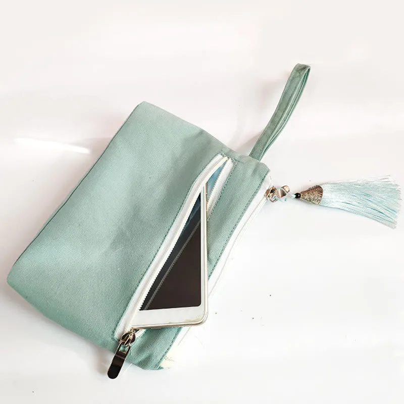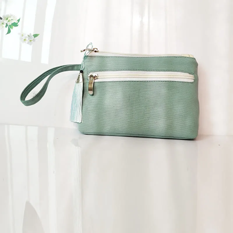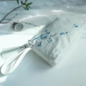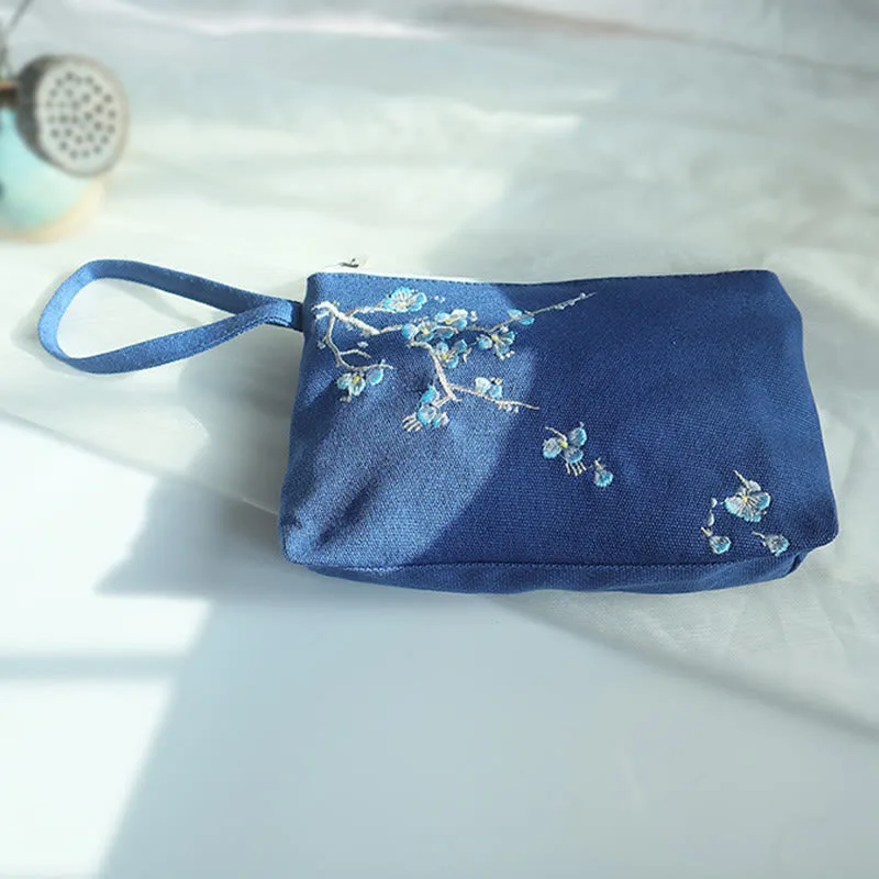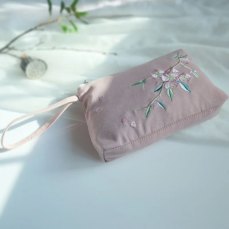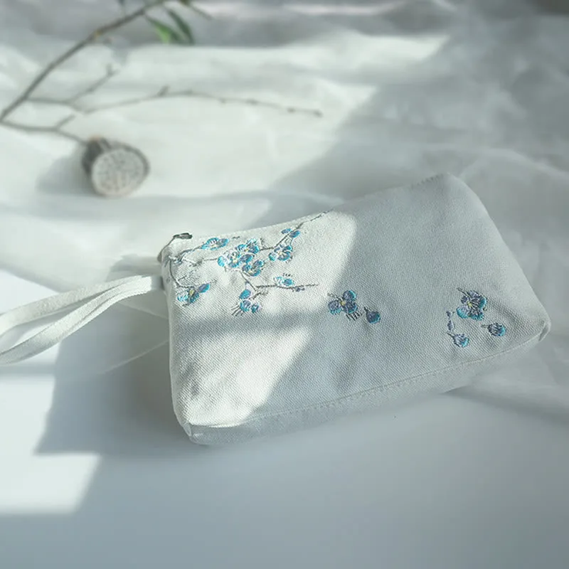 Small Flower Plum Cherry Crane wallet features intricate embroidery of plum blossoms. cherry blossoms. cranes. and peach blossoms on durable canvas. This wallet embodies traditional symbolism of beauty. longevity. and prosperity. Compact and practical. it’s perfect for carrying essentials while adding a touch of cultural elegance to your daily routine.
