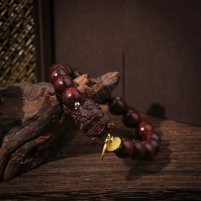 Mythstone Small Leaf Red Sandalwood Gold Swallower Calm Bracelet
