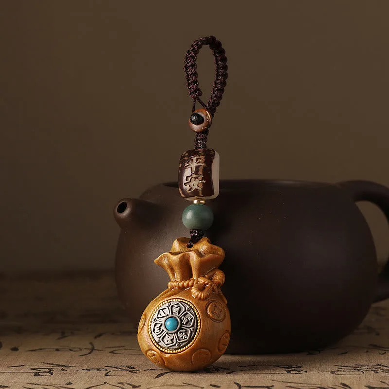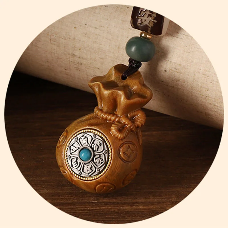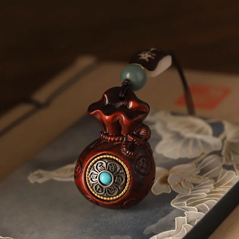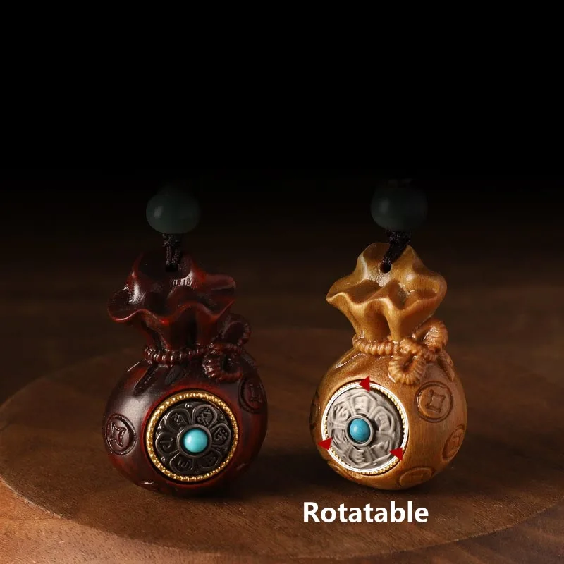 Mythstone Small Leaf Red Sandalwood Green Sandalwood Money Bag Om Mani Padme Hum Rotatable Protection Hanging Decoration