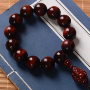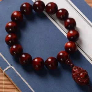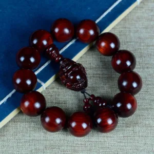 Small leaf red sandalwood has the effects of avoiding evil and protecting peace. eliminating disasters and relieving evil. eliminating evil and gathering wealth. changing Feng Shui. providing the gods of Buddha’s spiritual cultivation. and curing diseases and relieving evil. In the “Compendium of Materia Medica”. it is described that Pterocarpus striata has calming heart. soothing nerves. relaxing muscles and blood. anti-inflammatory and pain-relieving effects. Wearing small leaf red sandalwood jewelry can have incredible magical powers and inductions. such as enhancing immunity. preventing aging. stabilizing heart rate. improving insomnia and other medicinal effects.