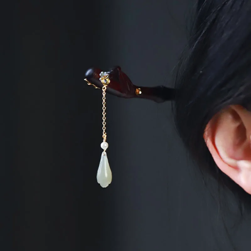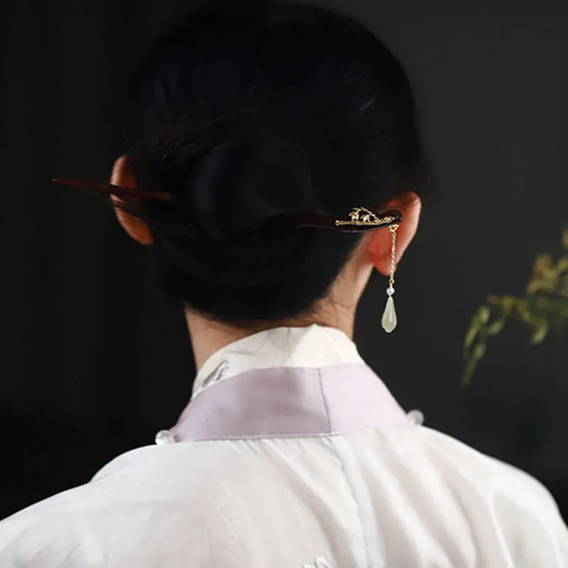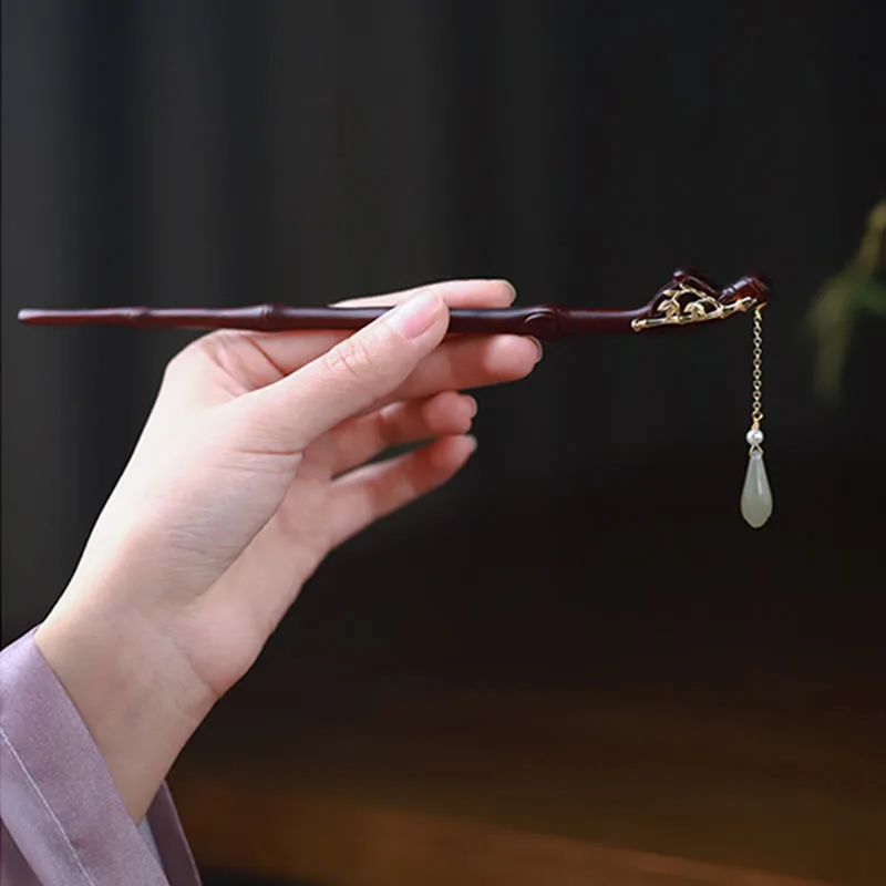 - Material: Small Leaf Red Sandalwood. Hetian Jade. Copper Plated Gold