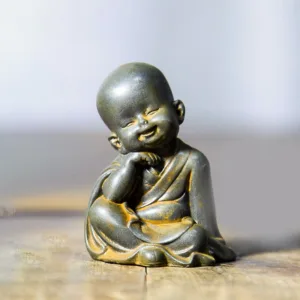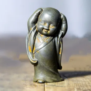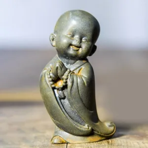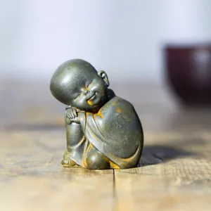 Meditating Monk Resin statue features a charming design with a large. adorable head. Crafted from iron powder rust cast resin. this small statue brings a touch of serenity and joy to any desk or space. Representing peace and mindfulness. this cute monk serves as a gentle reminder to take moments of calm and reflection. making it a perfect desk decoration.