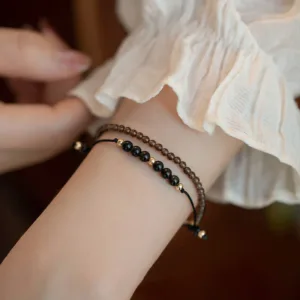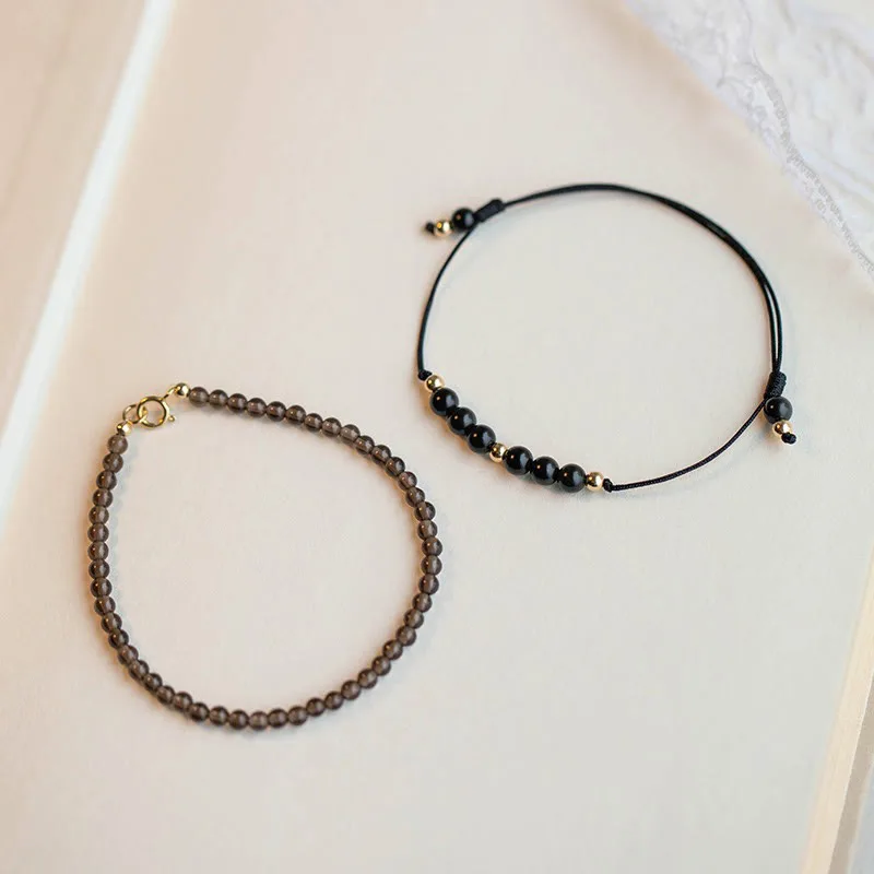 Mythstone Smoky Quartz Black Obsidian Ultra-thin Beads Success Bracelet