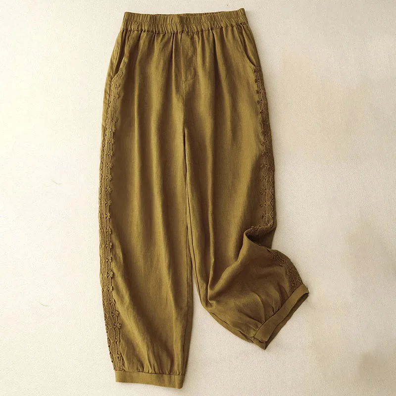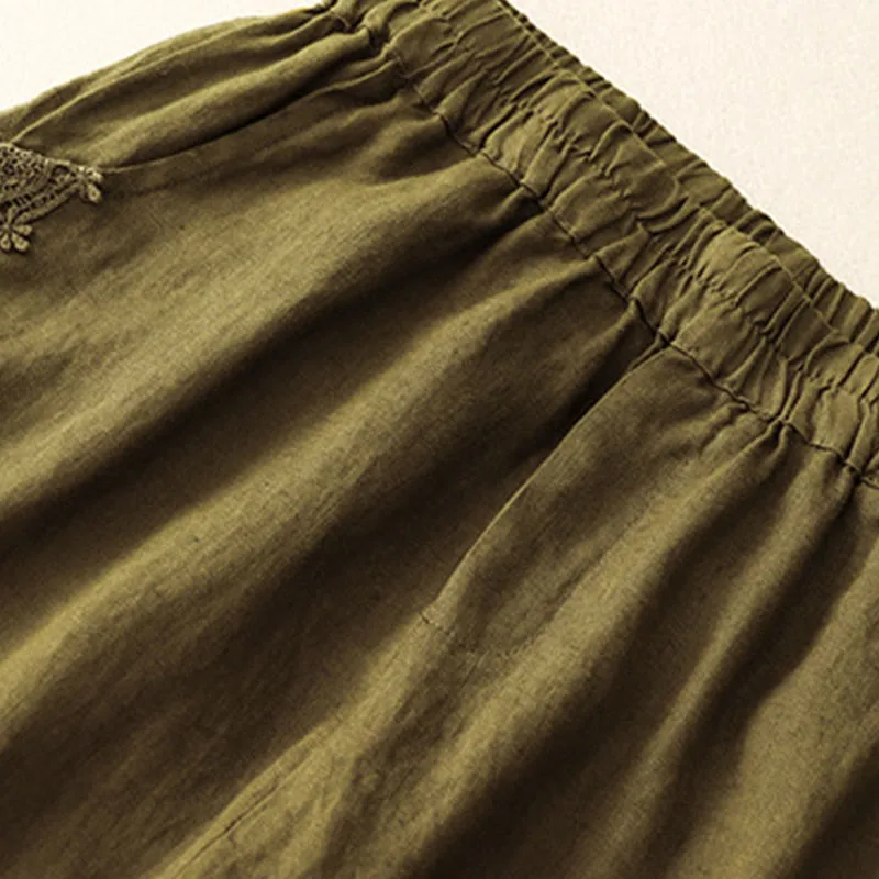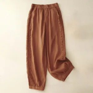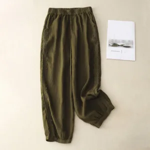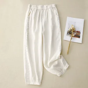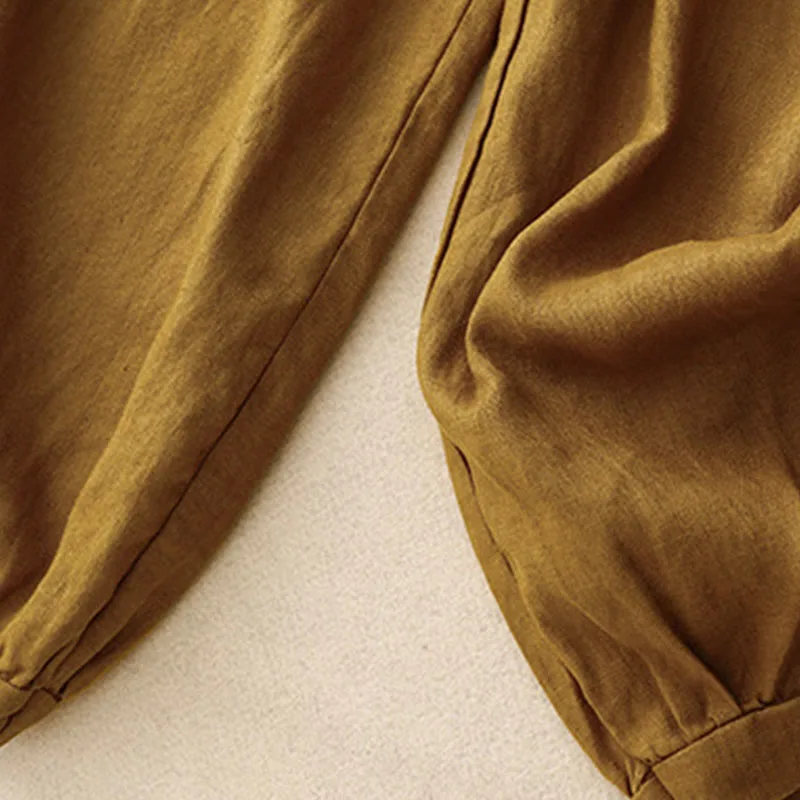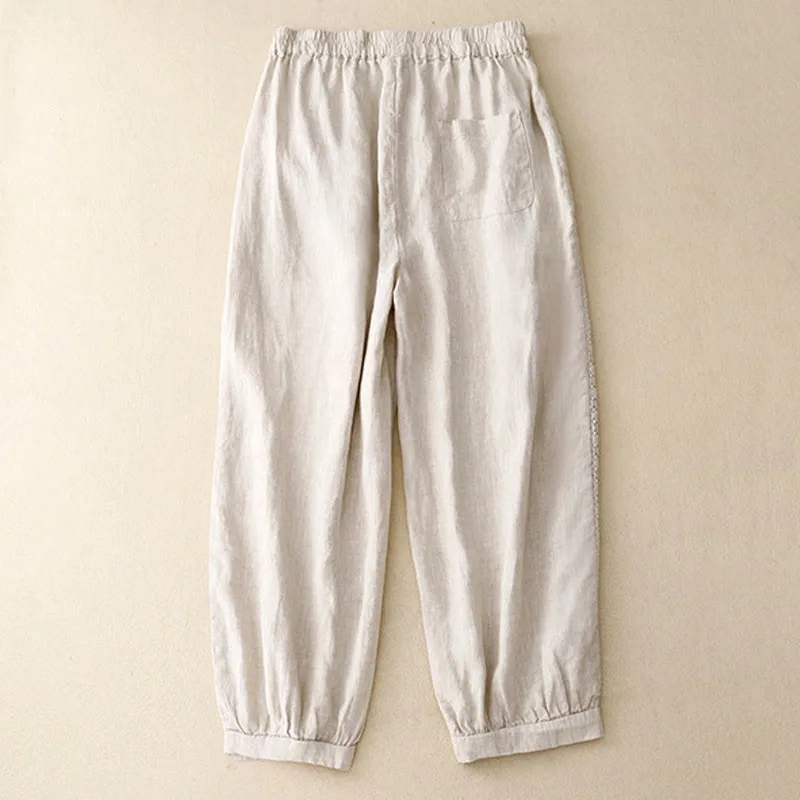 - SIMPLE DESIGN: The pants features simple design elements. Elastic waistband. These are natural Ramie Linen fiber and flexible in the waist.