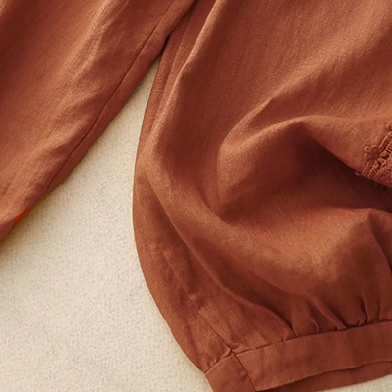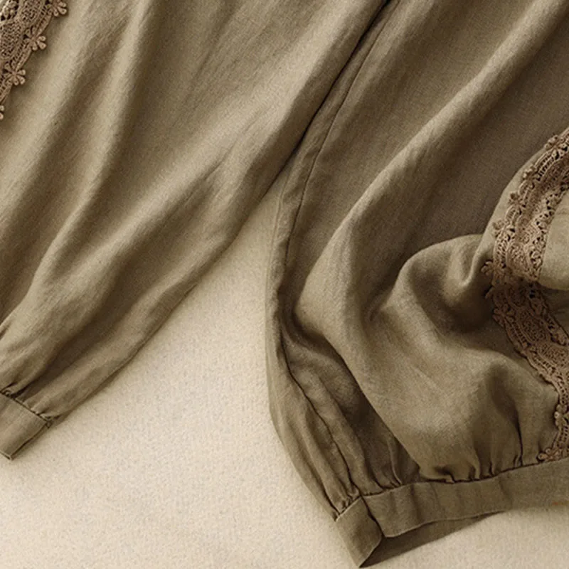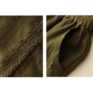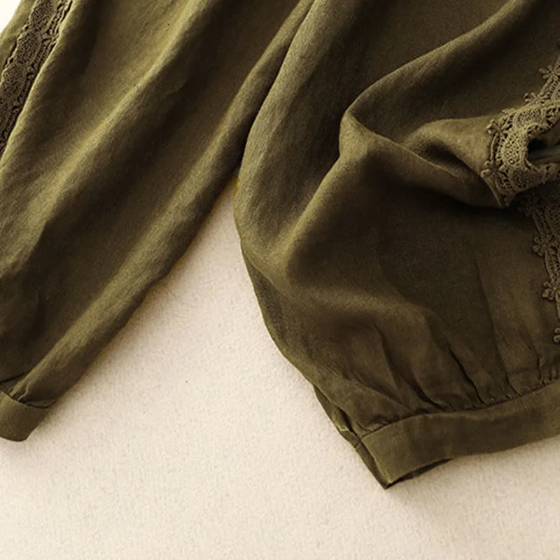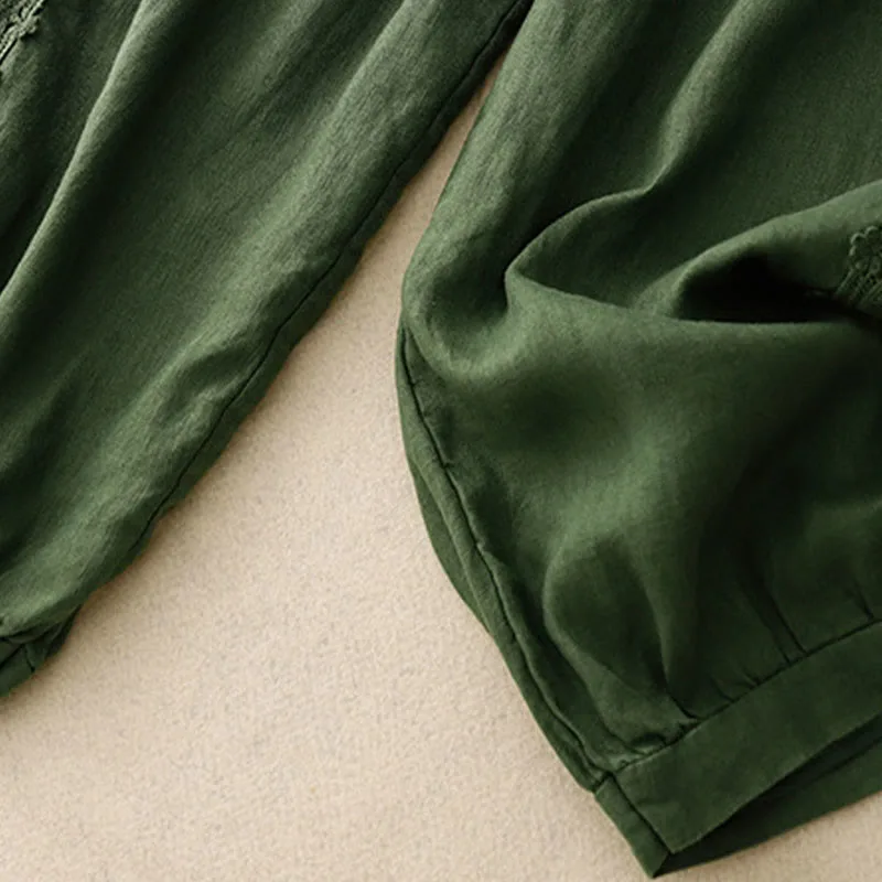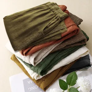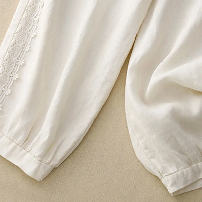 Lace Spliced Harem pants with elastic waist and pockets. offering a relaxed fit for ultimate comfort. These pants symbolize harmony and elegance. ideal for those seeking tranquility and ease in their daily movements. The solid color design with delicate lace and functional pockets make these pants a perfect choice for meditation and mindfulness practices. enhancing your sense of peace.