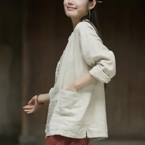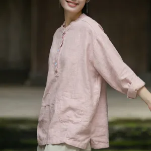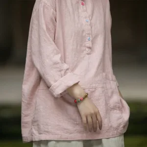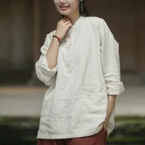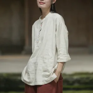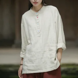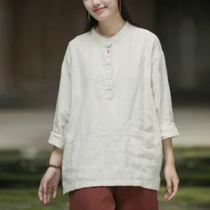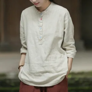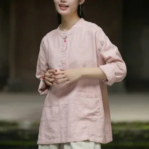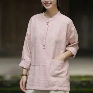 Be the first to review “Mythstone Solid Color Long Sleeve Ramie Linen Half Button Women’s Shirt”