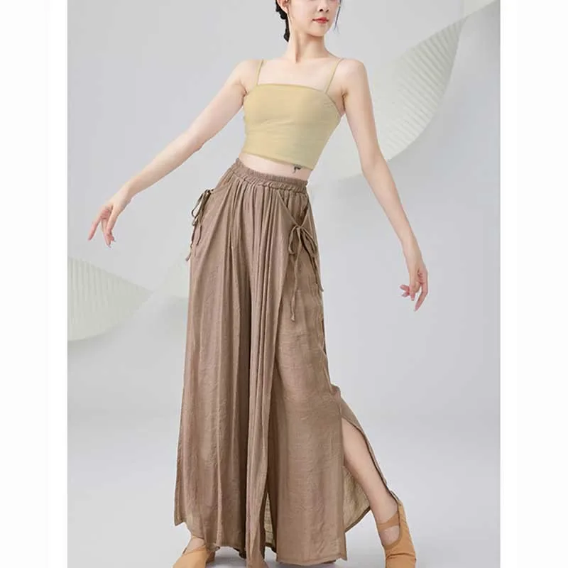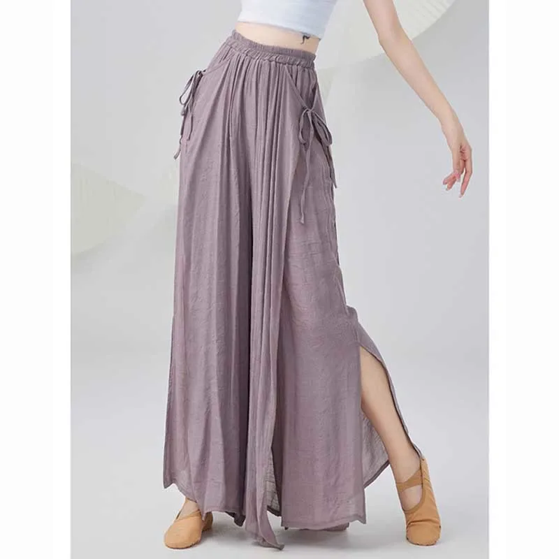 Solid Color Wide Leg pants are expertly designed for yoga and classical dance. Made from a cotton-linen blend. these pants prioritize comfort and ease of movement. The loose fit and breathable material facilitate flexibility and flow during practice. making them a staple for any dancer or yogi who values simplicity and functionality in their attire for optimum performance and comfort.