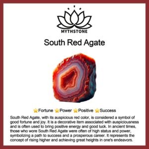 South Red Agate. with its auspicious red color. is considered a symbol of good fortune and joy. It is a decorative item associated with auspiciousness and is often used to bring positive energy and good luck. In ancient times. those who wore South Red Agate were often of high status and power. symbolizing a path to success and a prosperous career. It represents the concept of rising higher and achieving great heights in one’s endeavors.