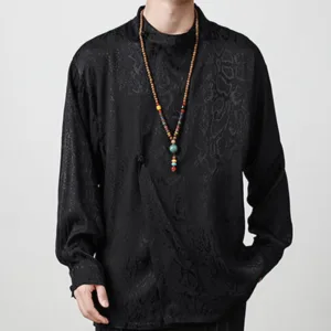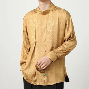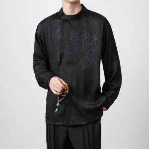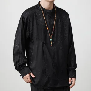 Splicing Frog-button Shirts feature intricate jacquard fabric with traditional frog-button closures. adding a touch of cultural elegance. The splicing design combines different textures for a unique. refined look. Crafted for comfort and breathability. this shirt allows for ease of movement while embracing meaningful tradition. Ideal for relaxation and mindfulness. it serves as a reminder of balance and tranquility in daily life.