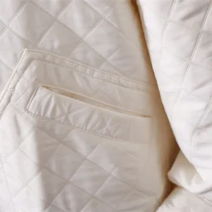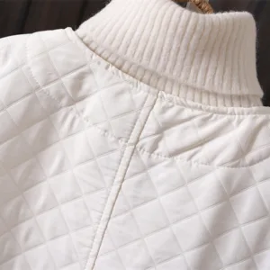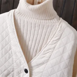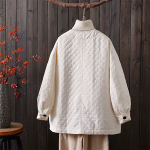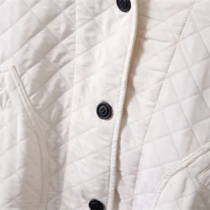 Spring Autumn Solid Color Cotton Jacket features a V-neck with a button-down front and a diamond-quilted texture that adds depth and charm. Crafted from soft cotton. this jacket provides comfort for both spring and autumn. Practical pockets add functionality. making it ideal for everyday use while maintaining a clean. versatile look. This jacket balances simplicity and utility. catering to those who appreciate refined yet practical outerwear.