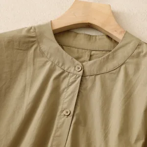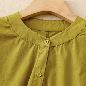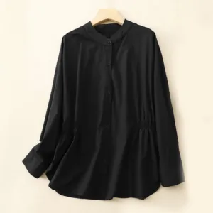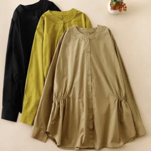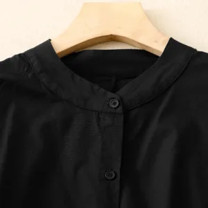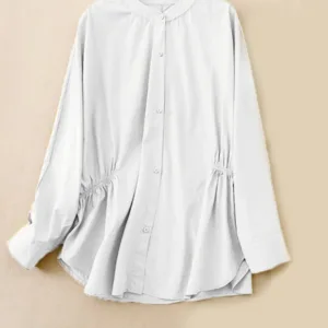 Stand Collar Cinched Waist Cotton Shirts offer comfort and elegance with a classic stand collar and cinched waist design. Made from a breathable cotton-linen blend. this shirt provides a soft. natural feel. ideal for mindful moments. The cinched waist creates a balanced and harmonious silhouette. symbolizing simplicity and grace. making it perfect for those who value both comfort and cultural appreciation.