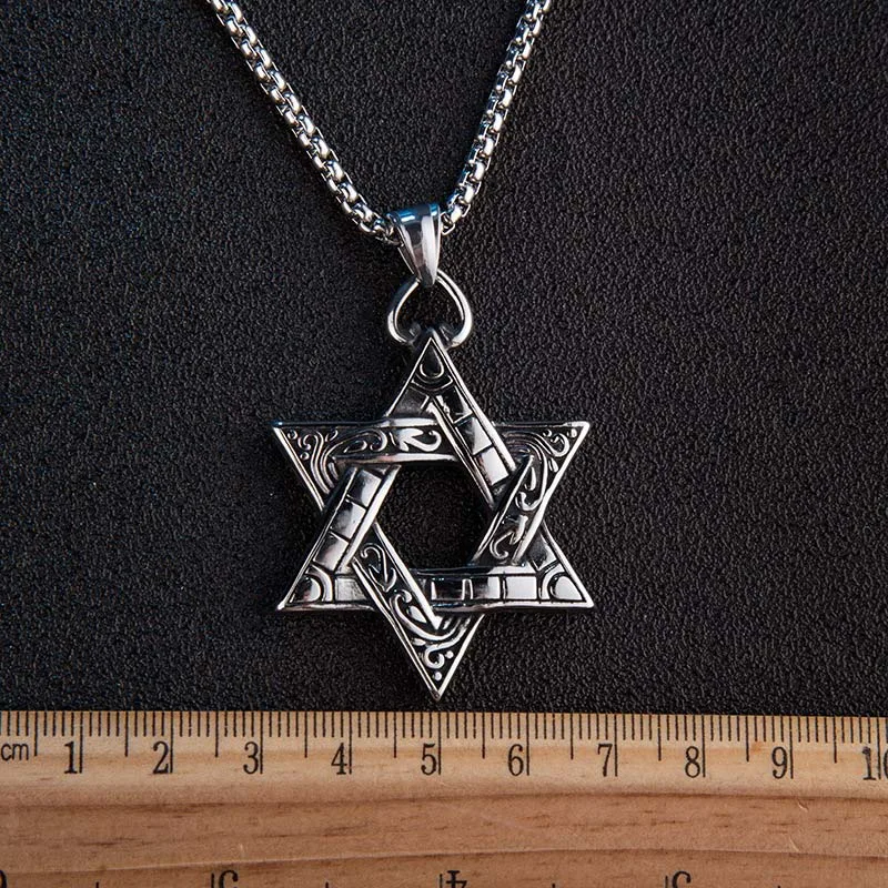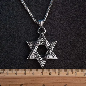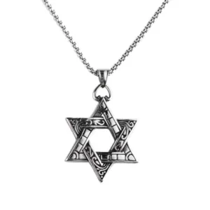 Star of David is a symbol of unity and hope. It has all its triangles intertwined. This shows that our soul is linked to the Lord Almighty in each and every aspect.This sacred symbol was seen on the round metal shield of King David and is believed to have brought him many glorious victories. not by his own might but because of the protection he received from the Almighty. The triangle pointing upwards symbolizes the good deeds that reach heaven and the triangle pointing downwards symbolizes the abundant blessings poured on the earth. It may also symbolize the dual nature of good and evil. and is used to protect one against the evil spirit.