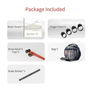 - Package: Manual*1. Scale Sticker *1. Drum Stick*2. Tray*1. Bag*1. Drum*1. Finger Picks*4