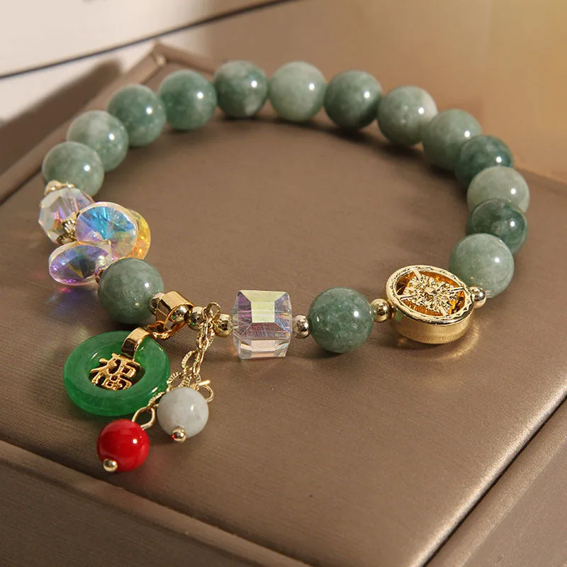 Mythstone Strawberry Quartz Jade Fu Character Charm Healing Bracelet