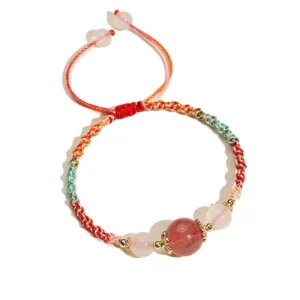 Strawberry Quartz Pink Crystal rope bracelet is designed to support emotional and physical well-being. Strawberry quartz fosters love and harmony. pink crystal promotes compassion. prehnite enhances intuition. and white agate brings peace. This adjustable rope bracelet combines these powerful stones. making it a meaningful accessory for promoting healing and balance in your daily life.