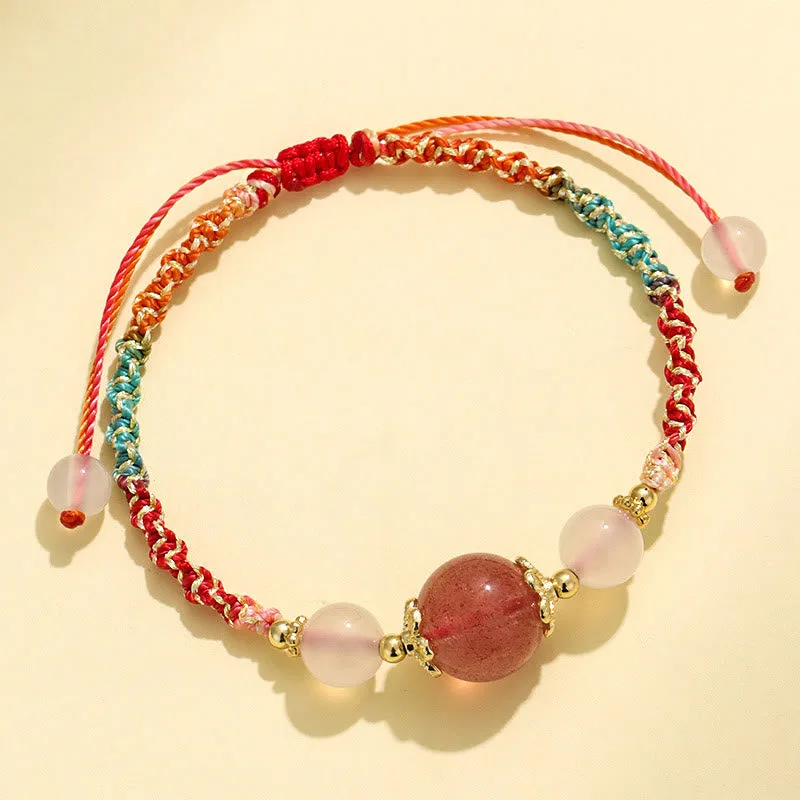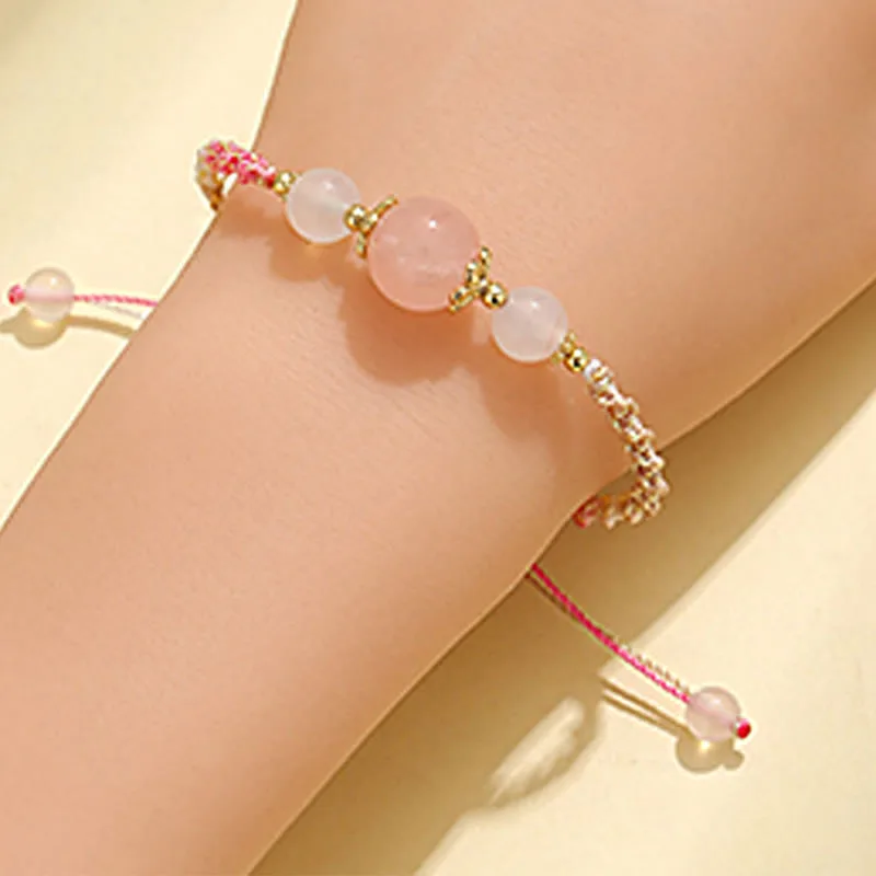 Mythstone Strawberry Quartz Pink Crystal Prehnite White Agate Bead Healing Rope Bracelet