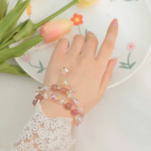 Mythstone Strawberry Quartz Zircon Flower Healing Double Wrap Bracelet