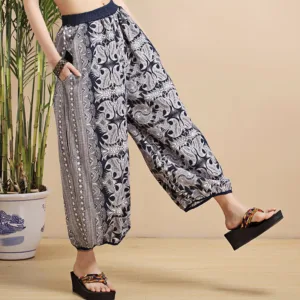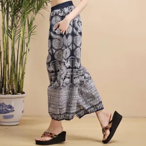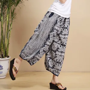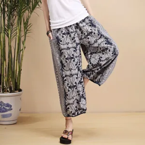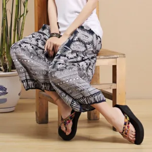 Geometric Stripes Linen pants combine blue and white geometric stripes with breathable. lightweight fabric. These pants are designed with practical pockets for added convenience. The geometric stripes bring a refreshing and modern look. while the linen ensures comfort and durability. Perfect for casual outings or relaxed moments. these pants provide ease and flexibility. making them a comfortable choice for any occasion.