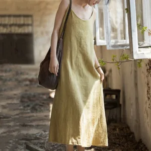 - PREMIUM MATERIAL: The Midi Dress is crafted from high-quality Linen fabric material; skin-friendly. Breathable. relaxed and Comfortable. which will prevent excessive perspiration and keeps the body comfortable. Also. Linen is a better environmentally friendly choice for healthy exercises.