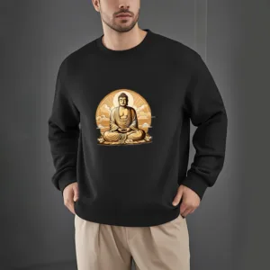 “Blending traditional Buddhist motifs with modern style. thissweatshirt aims to inspire inner peace and spiritual connection. By honoring the wisdom of Buddhism through accessible. contemporary design. we hope this piece brings joy and spiritual strength to all who wear it.”