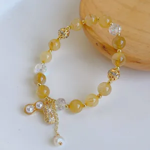 - Material: Colorful Rutilated Quartz. Golden Rutilated Quartz. Sun Stone. Crystal. Pearl. Copper Alloy