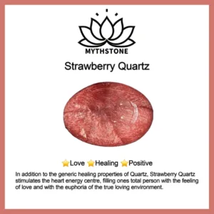 In addition to the generic healing properties of Quartz. Strawberry Quartz stimulates the heart energy centre. filling ones total person with the feeling of love and with the euphoria of the true loving environment.