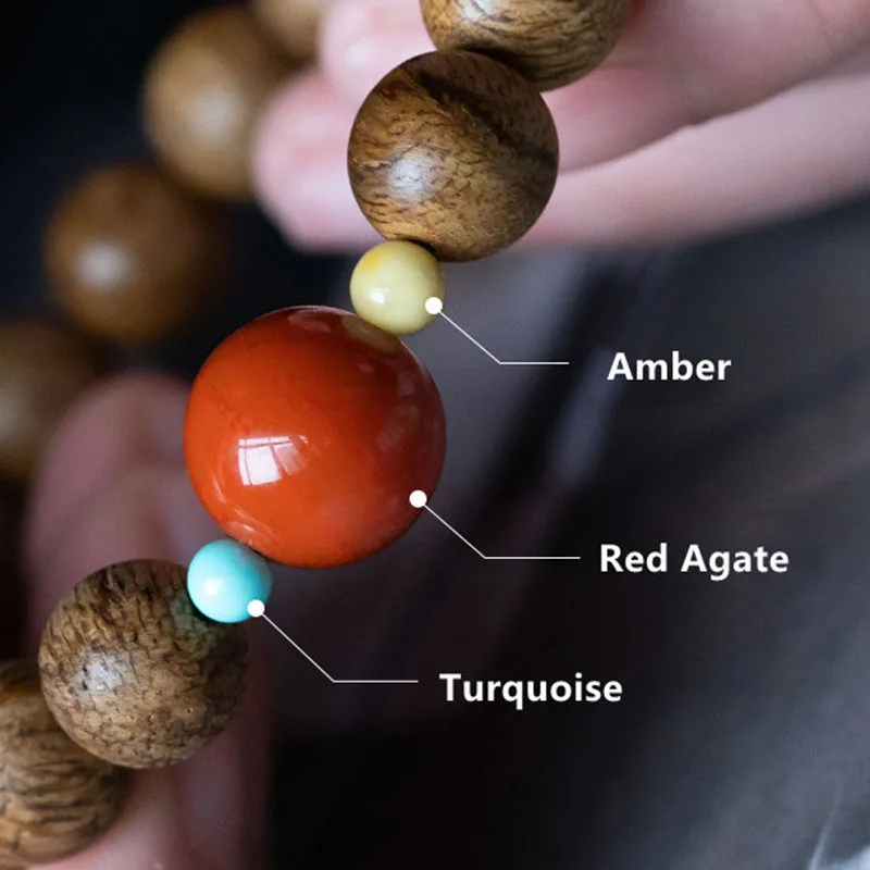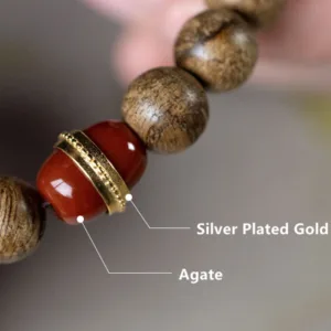 - Material: Agarwood. Amber. Silver Plated Gold. Red Agate. Agate. Turquoise. Small Leaf Red Sandalwood