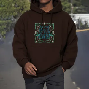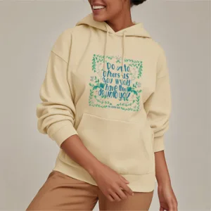 Golden Rule Polyester Hoodie features a square design made up of small flowers and grasses. with an inspirational message at the center. symbolizing kindness and mindfulness. Made from soft. fleece-lined polyester. this hoodie provides warmth and comfort. perfect for introspection or relaxation. The cozy material and gentle floral pattern encourage a peaceful state of mind. reminding you to live with compassion and respect toward others.