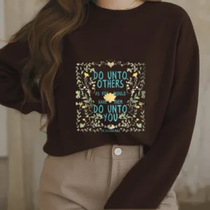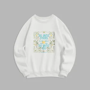 The Golden Rule Lotus Polyester Sweatshirt features a floral and grass frame with a lotus at its center. symbolizing purity and spiritual growth. The design includes an inspiring message that encourages compassion and mindfulness. Crafted from soft fleece-lined polyester. this sweatshirt offers warmth and comfort while promoting inner peace. It serves as a constant reminder of the golden rule and the importance of kindness and balance in life.