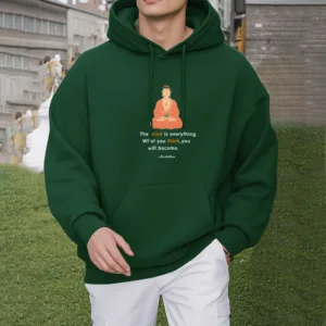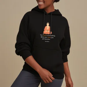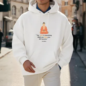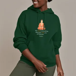 “Blending traditional Buddhist motifs with modern style. this hoodie aims to inspire inner peace and spiritual connection. By honoring the wisdom of Buddhism through accessible. contemporary design. we hope this piece brings joy and spiritual strength to all who wear it.”