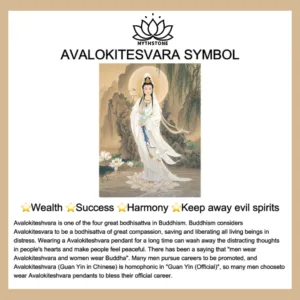 Avalokiteshvara () is one of the four great bodhisattva in Buddhism. Buddhism considers Avalokitesvara to be a bodhisattva of great compassion. saving and liberating all living beings in distress. Wearing a Avalokiteshvara pendant for a long time can wash away the distracting thoughts in people’s hearts and make people feel peaceful. There has been a saying that “men wear Avalokiteshvara and women wear Buddha”. Many men pursue careers to be promoted. and Avalokiteshvara (Guan Yin in Chinese) is homophonic in “Guan Yin (Official)”. so many men choose to wear Avalokiteshvara pendants to bless their official career.
