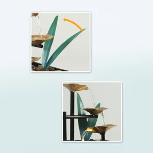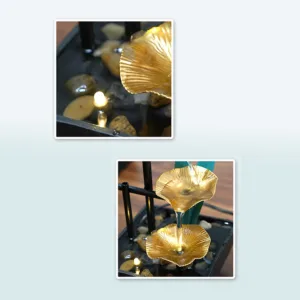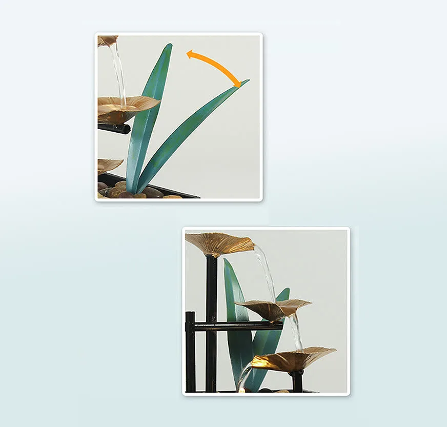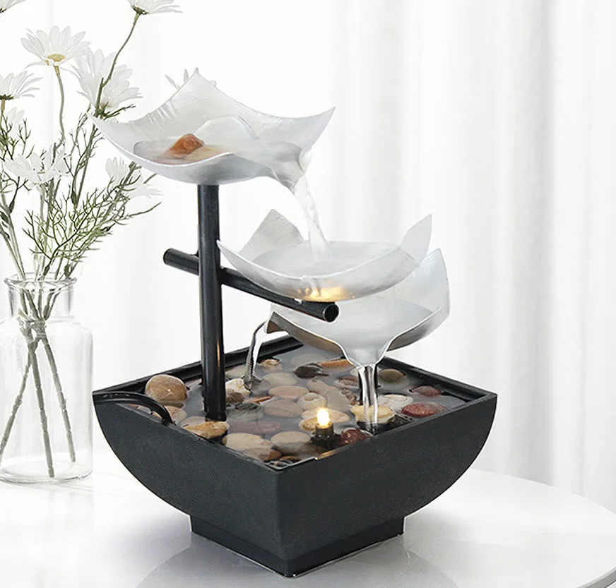 Immerse yourself in tranquility with the Mythstone Three-Layers Waterfall Fountain. This tabletop ornament features a captivating lotus design. accompanied by river rocks. The lotus. symbolizing purity and enlightenment. resonates with the journey of overcoming challenges and finding inner strength. Elevate your space with the soothing sound of flowing water and the profound symbolism of the lotus flower.