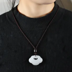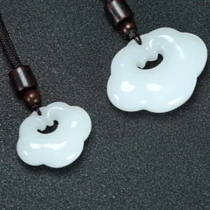 Tianshan Jade Abundance necklace features a stunning material of Tianshan jade and golden silk jade. adorned with a traditional Chinese lock charm. This pendant symbolizes prosperity and protection. blending elegance with cultural significance. Perfect for those who appreciate meaningful jewelry. it adds a touch of timeless beauty and abundance to any outfit. making it an ideal accessory for special occasions.