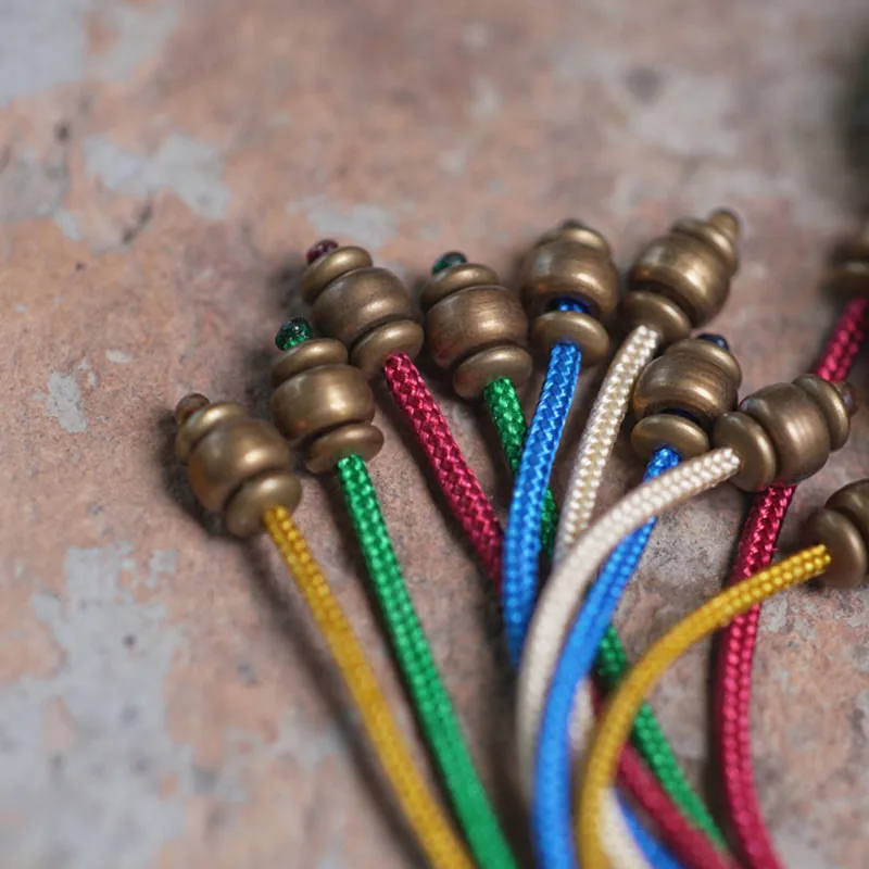 Mythstone Tibet Ebony Wood Copper Peace Tassel Wrist Mala Bracelet